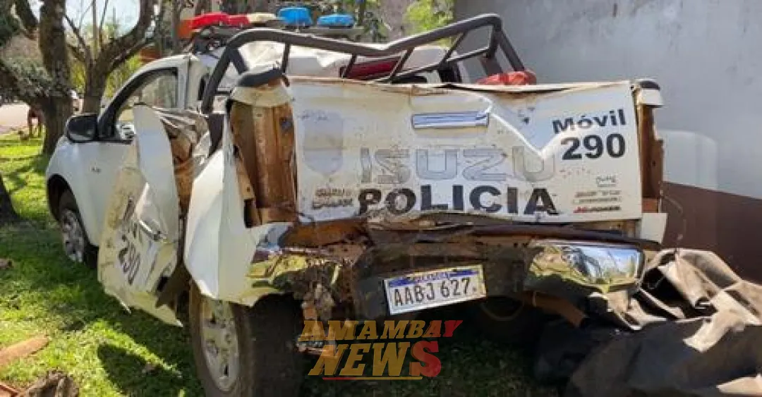 “La patrullera quedó inservible, estaba haciendo su recorrido cuando este camión impactó de pleno en la parte trasera y ya ven el resultado”, comentó Mereles.