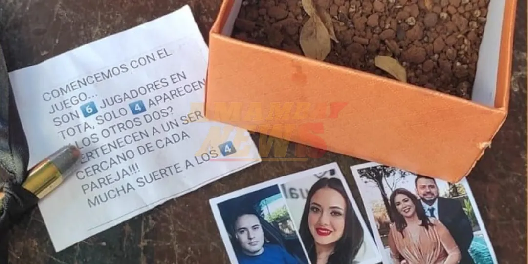 Dentro de la bolsa de regalos, se encontraban una caja que contenía una bala calibre 38mm atada con una cinta negra, cuatro fotografías y una intimidante nota que reza: “Comencemos con el juego...son 6 jugadores en total, solo 4 aparecen, ¿y los otros 2? Pertenecen a un ser cercano de cada pareja. Mucha suerte los 4″.