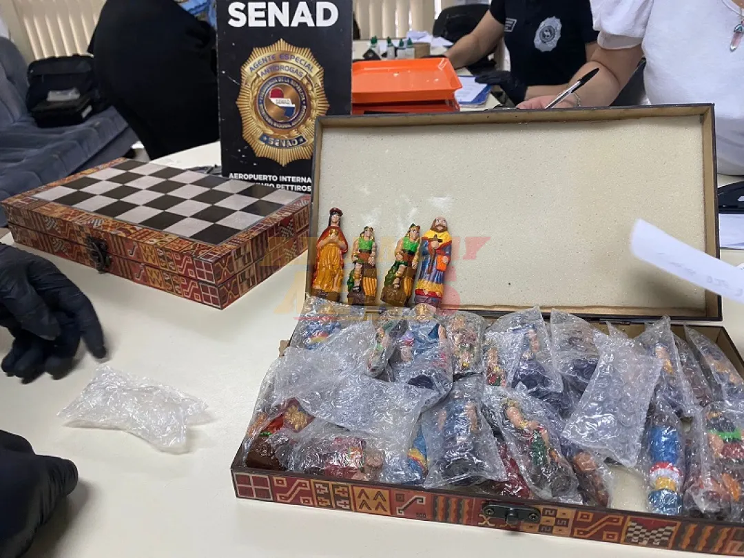 Incautan cocaína en piezas de ajedrez artesanales en el Aeropuertométodo de ocultamiento piezas artesanales de ajedrez, una modalidad ya identificada anteriormente en operativos similares y que fue incautada tras controles realizados.